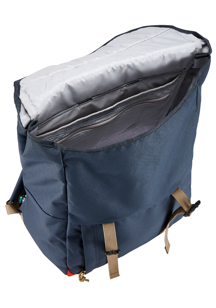 Outside: - Main Body: 600D REPREVE® Our Ocean - Bottom Panel: 1680D REPREVE® - Straps: PP Webbing - Buckles: Plastic Inside: - Liner: 200D Recycled PET