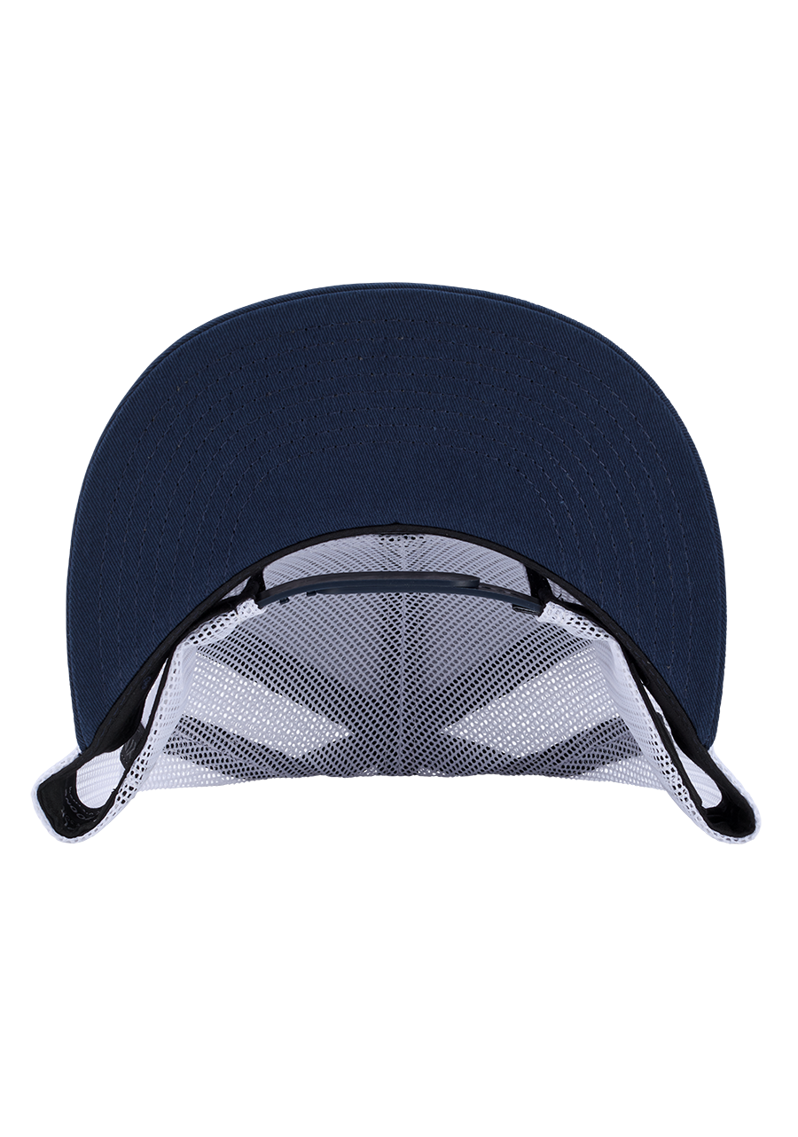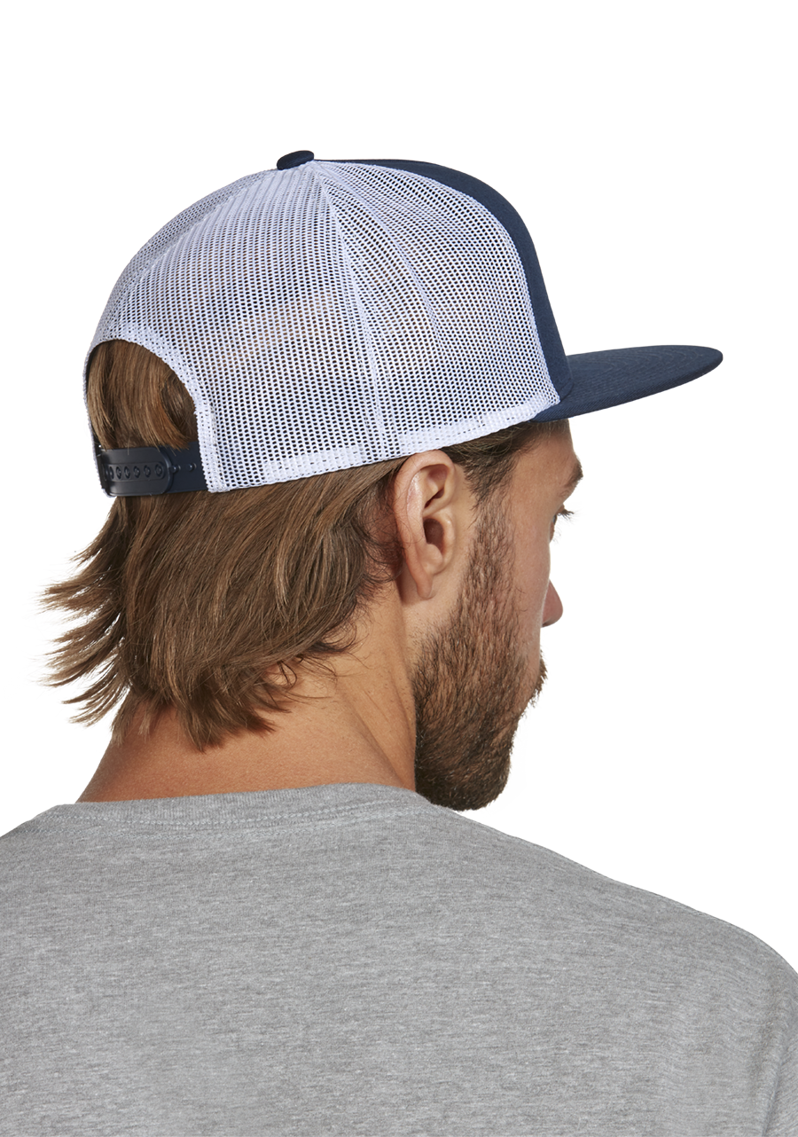 Color blocked, semi-deep trucker with tons of color and pattern combinations. The front panel and bill really pop against the mesh back, and the silicone logo patch on the front gives depth to this handsome headcover.